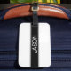 Bold Black & White Stripe Editable Text Bagagebricka