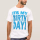 A bold and energetic It's My Birthday design featuring bright blue text on a sleek black background. Perfect for celebrating birthdays in a loud, confident, and fun way. The strong typography and high-contrast colors make this design stand out instantly — ideal for parties, photos, gifts, and anyone who wants to announce their day in style
