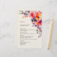 Den här förbluffande bröllop-menyn har en arrangemang blommigt med feta och konstnärliga vattenfärger som är full av riker. I hörnet av den övre högerna visas handmålade blomningar i pulserande korall rosa, tangerin orange, djupplommon, mulberrys lila och midnattsvansflottan, mjukad av delikat dammig och muterad lavender bladage. Den vita bakgrunden skapar en färsk, hårkontrast som gör att färg kan skina. Perfekt för fallbröllop, boho firande, eller några par tittar göra en färglös elegant påstående. Fullständigt anpassade i Zazzles design i verktyg - lägg till texten, uppdatera typsnitt och anpassa den på ditt sätt. Om du vill ha en anpassning eller ytterligare produkter med den här designen kan du kontakta mig när som helst.