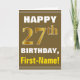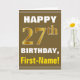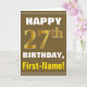 Bold, brun, faux Guld 27:e födelsedagen med Namn-k Kort