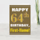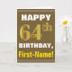 Bold, brun, faux Guld 64:e födelsedagen med Namn-k Kort