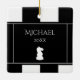 Den här dekorationsdesignen för den svarta och vita schack-julen har en klassisk Knight-schess biet och en slående chessboard-design. Anpassa baksidan av denna utsmyckning med namn och år.