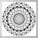 This striking mandala design emphasizes bold contrast and rhythmic repetition, creating a visually captivating circular composition. At its core, a compact floral rosette radiates outward into layered rings of elongated petals and teardrop shapes, each carefully spaced to maintain symmetry and flow. What sets this piece apart is the interplay between thick, ink-rich shapes and fine line detailing, giving the design a dynamic, almost pulsing effect as the eye moves from the center to the outer edges.