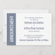 Här är ett djärvt, modernt kort för att meddela dina gäster om det blir nödvändigt att ändra ditt bröllop-datum. Använda mallen fält om du vill lägga till dina personuppgifter och göra den här unika, enkla designen till din egen. Ett färg-band längs den lämnat är en dammblått mörk som matchar texten och baksidan av kortet. "ANNOUNCEMENT" visas i fetstil vitt på den här remmen till lämnat. Alla typsnitt och färg är också redigerbara. Var god kontakta alla speciella förfrågningar eller anpassa hjälpen. Andra delarare med alternativ ordalydelse finns också tillgängliga i samlingen.