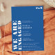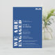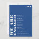Fet, vit, blå förlovningsfest i bröllop med "vi är engagerade" skriven med ett överdimensionerat fet teckensnitt i vitt
