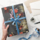 En exotisk tropisk julomslutning papper, denna kolsvart papper med fet svart och guld tropiska löv och löv som accentueras med krämröda blommor är lika vacker som exotisk.
