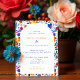 Bold Floral Folk Fiesta Wedding Invitation in bright orange and electric blue.