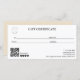 Öka din kundupplevelse med vårt moderna och minimalistiska presentkort, designat i elegant beige och vita tonar. Det här mångsidiga certifikatet har ett fet svart teckensnitt, en QR-kod för enkel inlösen och medieikoner från social för att hålla kontakten. Det är perfekt för bageri, café, restaurang eller vilket företag som helst. Gör presenten sömlös och snyggt samtidigt som du får större professionell på ditt varumärke