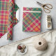 This stunning wrapping paper showcases a bold, modern tartan plaid with a striking diagonal pattern that catches the eye. The unconventional color palette is vibrant and sophisticated, featuring brilliant fuchsia red and deep emerald green, balanced by warm beige/tan and pops of bright orange. This is the perfect choice for an unconventional and fashion-forward holiday or any occasion that demands a unique, maximalist, and artistic gift wrap. Stand out with this incredibly stylish design.