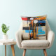 Add a splash of retro-modern flair to your sofa with this stylish throw pillow. The design showcases an energetic abstract pattern of intersecting lines, bold circles, and rich orange and blue brushstrokes. It is the perfect decorative accent for eclectic, mid-century, loft, or contemporary interiors.