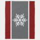 Bold Grått Deep Red Rand White Alpine Snowflake Fleecefilt