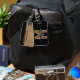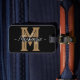 Gray background with monogram and family name in center of tag. Colors can be changed.