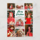 Bold and beautiful 9 photo collage Merry Christmas cards with your favorite family pictures from 2025. Customize these multiple photo holiday cards with kids or couple photographs around your personalized name and green cursive script.