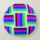 Öka ditt utrymme med 16 x 16 runda dekorativ kudde med en fetstilt regnbåge rand i dynamiskt geometriskt mönster. Perfekt för modernt, eclectiskt eller konstnärligt insida. Denna dekorativa kudde ger soffa, stolar eller sängar en lekfull komfort för färg och snyggt.