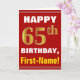 Bold, Red, Faux Guld 65e Birday w/ Namn Card Kort
