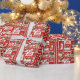 Bold and beautiful 9 photo collage Merry Christmas wrapping paper with your favorite family pictures from 2025. Customize this multiple photo holiday gift wrap with kids or couple photographs around your personalized name in red script.