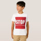 Den här pojkens T-shirt har en fetstilt röd STOP-skylt som tillför attityd till valfri utrustning. Perfekt för skola, vardaglig bära eller temat party gör den högeffektsgrafiken till ett utmärkt biet. Mjuk, hållbar och lätt att bära är ett roligt och ett uttryckligt val för pojkar som gillar fetstilt, grafiskt stil.