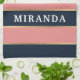 Snyggt, feminin, djärvt modernt rand i rosa och marinblått åtskilt av mindre guld rand. En mall för anpassade namn visas ovanpå mönster. En present till personligen med en feminin vibe.