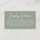 Bold Script Sage Grönt Baby Shower Visning Shower Tilläggskort