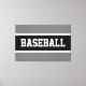 Den här sportetiska, atletiska designen har fet BASEBALL-text inuti det svarta mittentexten rand, som markerats med vita ränder mot yttre ränder. Texten kan vara personlig.