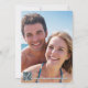 En konstig inbjudan till kustbröllop med en strand i fetstil, blått och turkos färg. På baksidan kan du lägga till både fotot och QR-kod med webbplatsen adress. En inbjudan från roligt lycklig till en strand- eller destinationsbröllop.