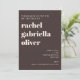 This Bat Mitzvah invitation features bold modern typography paired with a warm brown background for a fresh, confident look. The layout highlights the honoree’s name while keeping event details clear and easy to read. Designed for families who love bold, modern design with a clean, timeless feel. Names, date, location, and RSVP details are fully customizable to match your celebration.