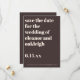 These personalized save the date cards in brown give guests an early heads-up while setting the tone for your wedding day. Customize the names, date, location, and website to share the details guests need most, whether you’re planning a destination wedding or a local celebration. The bold, modern typography stands out in the mail and pairs easily with minimalist or contemporary wedding stationery. A simple, effective option for couples who want their save the date to feel intentional and easy to read.