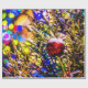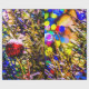 Julgran och boll med rött prydnadsämne täckt med färskt snö. Färgfullt ljus runt. Smakfull och glatt stämning. God jul och Gott nytt år. Säsongens hälsningar. Skriver ut och ger till vem som helst för roligt och bra. Vågrät- eller landskapsinriktade produkter och souvenirer.