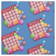 Bingokort och bingobollar på en blåttbakgrund, men bakgrundsfärgen kan ändras till någon annan som du föredrar. Använd skräddarsy knäppas och färgpickeren för att ändra färgen.