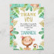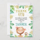 Den här pojkens lilla apa födelsedagskalas tack för att du har ett kort med en söt vattenfärgsapa och olika vattenfärger och faux-tropisk löv från guld. Bakgrunden är vit med en liten faux-guld-punkt mönster runt kortets kant. Den här inbjudan är ett söt sätt att tacka din lille pojkes gäster för att de kom till hans party. Det finns också samma inbjudan till designfödelsedagskalender.