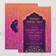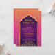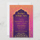 Bollywood- eller arabiska Natt-temat födelsedagsfest inbjudan-kort i orange, magenta och lila Mbre med guld-folie-accents.