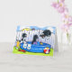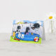 "Bombs Away" fångar den vatten-vänliga naturen hos det portugisiska Vatten-Hund i en komisk bild av två spel i bassäng medan ett kannonboll i stil.
