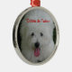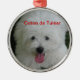 Fotoet av en bomullsde Tuléar valp på ett silver ribboned prydnaden.