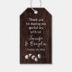 De här rena bröllopsfavärdena har en rustik bondgård som känns för dem och användor en varm vintern vit vattenfärg papper bakgrund som visar den vattenfärgade grått-i-vatten-pitcher som håller en bukett av vita och bruna bomullsstammar på märkrns framsida med orden "Tack" i mörk brun. Baksidan av favärket är mörk brun skogskorn som ser ut mönster med ett tack från anpassadet och namn från bruden och brudgummen och bröllop-datumet i elfenben med en bomull gren nedanför. Om du behöver hjälp med att anpassa ordalydelsen kan du skicka e-post till mig på niteowlstudio@gmail.com eller använda funktionen Zazzle chatta och jag kommer att vara lycklig för att hjälpa till.