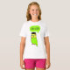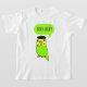En t-shirt med en teckning av en grönt parakit som bär en svart snyggt och säger: "Bon Jour!" (vilket elak "Hej i Fransk)