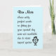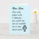 A funny happy birthday card, featuring a bad poem and illustration, that doesn't have those clever witty words (i.e. bon mots) to wish happy birthday because of international trade issues. Our character, tillie, is wearing a beret and looking a little frustrated.