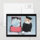 Bubba i en svart t-shirt och babet-säng med sin röda väska som innehåller hans badrock och svarta slips. Du kan anpassa texten.