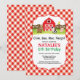 Bondagsinbjudan. Lantlig gårdsdjur på bondgård. Ladugård Ko Gris Häst Höna. Pojke eller flicka födelsedag. 1:a Första födelsedagen. 1:a 2:a 3:e 4:e 5:e 6:e 7:e 8:e 9:e 10:e 11:e 12:e 13:e 14:e 15:e, Alla åldrar. Röd och vit rutig bakgrund. Digitalt utskrivbart. För ytterligare anpassning, klicka på "Anpassa"-knappen och använd vårt designverktyg för att ändra denna mall.