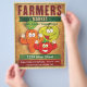 Vem älskar inte sin lokala bondemarknad? Marknadsför din lokala bondemarknad med den FANTASTISKA Bondemarknad Färska Lokala Grönsaker -affischen! Redigera texten och lägg till din bondemarknadsinformation. Bondemarknadsaffischen har en flexande tecknad morot och tomat och äpple! Besök och njut av din lokala bondemarknad, ät lokalt och ät färskt! Tack för att du köper lokalt!
