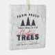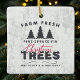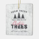 Bondfräska julgranar Farmhouse jul keramisk prydnad. Vacker rustik farmhouse jul heminredning. En gammal vintage julgran annonser pryder denna söta högtid design. Accenterad med julgranar och högtid typografi.