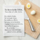Två visningsalternativ: som en kvartsfold eller halv fold. Vintagefont på en skarp vit bakgrund. "För att trivas på 2020-talet, lev som det vore 1920-talet. Ät fullkorn. Få tillräckligt med sömn. Gå utomhus. Gå promenader. Låt ditt sinne vandra. Delta i analoga hobbyer. Umgås personligen. Var närvarande. Se till dina manér och visa social hänsyn."