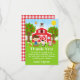 Detta söta och roliga tackkort har en brunhårig pojke med ljus hy bredvid en röd lada med en tupp väderflöjel. Det finns bedårande gårdsdjur som en ko, gris och höna. I bakgrunden syns en klarblå himmel, äppelträd, solsken, fjärilar och tusenskönor. Texten kombinerar fetstil och sans serif-teckensnitt för en stilren och modern look. Detta är perfekt för en bondgårdsinspirerad födelsedagsfest.