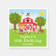Denna söta och roliga servett visar en rödhårig flicka med ljus hy bredvid en röd lada med en väderkvarnsvisare. Det finns söta gårdsdjur som en ko, gris och höna. I bakgrunden syns en klar blå himmel, äppelträd, solsken, fjärilar och tusenskönor. Texten kombinerar feta och sans-serif-typsnitt för en stilren och modern look. Detta är perfekt för en bondgårdsinspirerad födelsedagsfest.