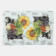 Köksduk i lantlig stil med design av svarta katter, solrosor och grönsaker. Den stora bilden är tryckt rygg mot rygg så att hängning av duken helt öppen visar designen. Svarta katter bildar ett ljust mönster i bakgrunden och två svarta katter är en del av den stora bilden. En kattunge har tassarna i en skål mjölk, bredvid en kruka full av nyligen uppdragna rotfrukter. En annan katt sitter på andra sidan av grönsakslådan. En stor solros står bakom katterna och grönsakerna. Dukens färg är mycket blekblå.