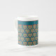 Bone China Mugg, Red, Grönt Hjärtar på Teal Benporslin Mugg