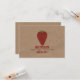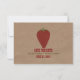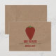 En bröllopsinbjudan med skrynklig brun pappersbild i bakgrunden på framsidan och baksidan. Framsidan har en illustration av en jordgubbe. Anpassa den röda och gröna texten.