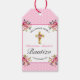 Bonito Rosa Blommigt Oro Cruz Bautismo Gracias Presentetikett