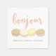 Bonjour! Lägg till ett stycke Parisian stil i möhippan med dessa söt cocktail-blöjor. Utformningen har fyra utsökta illustrationer av Fransk makaron i pastellskriften rosa, elfenben, tan och blek, med "Bonjour" i handskrivet skrivna bokstäver av stil i peachy rosa. Anpassa med hedersgästen namn för en personlig.