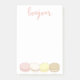 Åh, la! De här söt klibbiga anteckningarna kommer att lägga lite parisisk luft till till och med de mest triviala dagliga uppgifterna...Som din inköpslista! Utformningen av "Bonjour" i persikotypsnitt med handskrivet stil med fyra smakrika makaronillustrationer i rosa, gult, elfenben och beige.