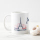 I detta vackra Paris-inspirerade mugg finns Eiffel Torn med detaljinformation om blommigten, en tunn trefärgsrektangel inspirerad av flagga Fransk och texten "Bonjour Paris" i elegant typografi. Perfekt gåva till någon som beundrar Ljusets stad. Gör det speciellt att lägga till ditt namn eller en älskad persons.